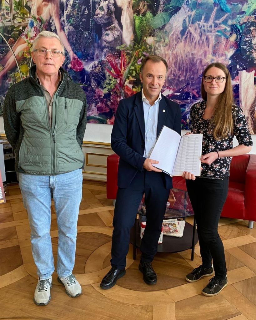 Am 1. Oktober 2025 übergaben wir Herrn Bürgermeister Bernhard Auinger unsere Petition mit mehr als 2.400 Unterschriften. Die darin enthaltenen Forderungen trugen sicherlich auch zum Ergebnis des Runden Tisches der Stadtregierung am 2. Oktober bei.