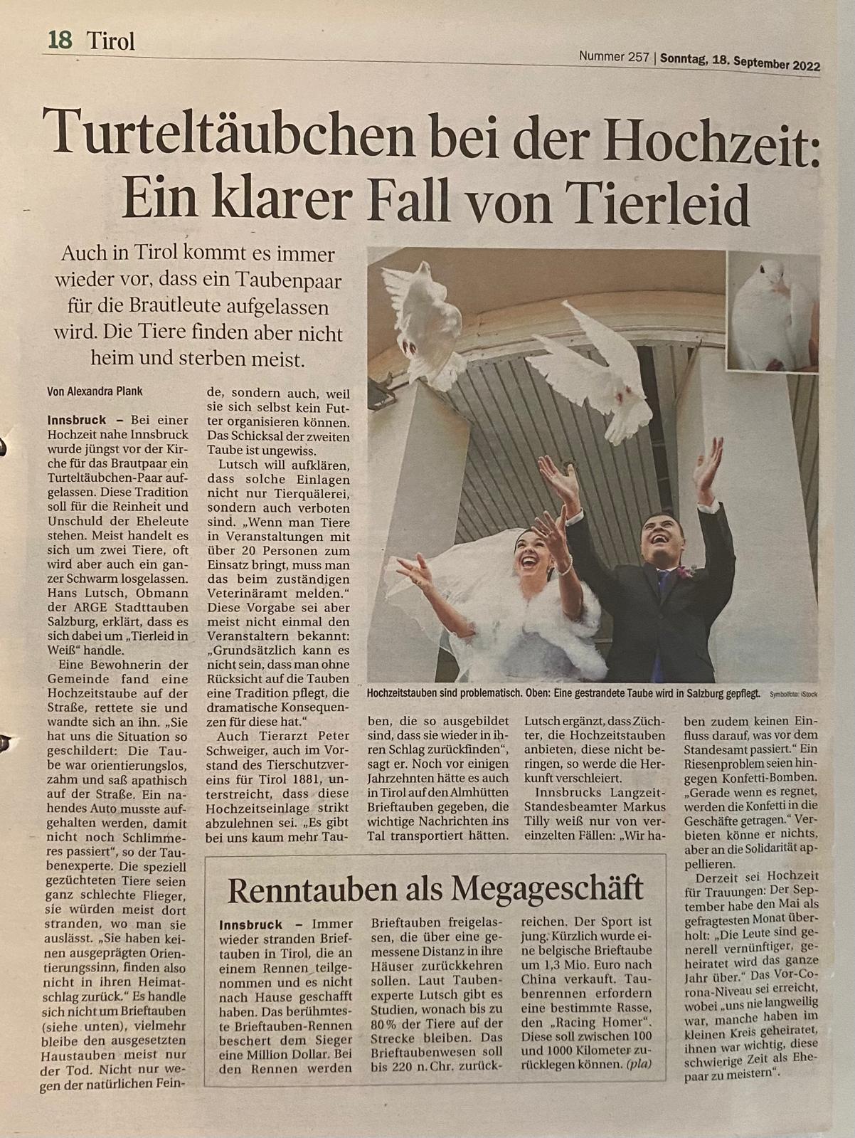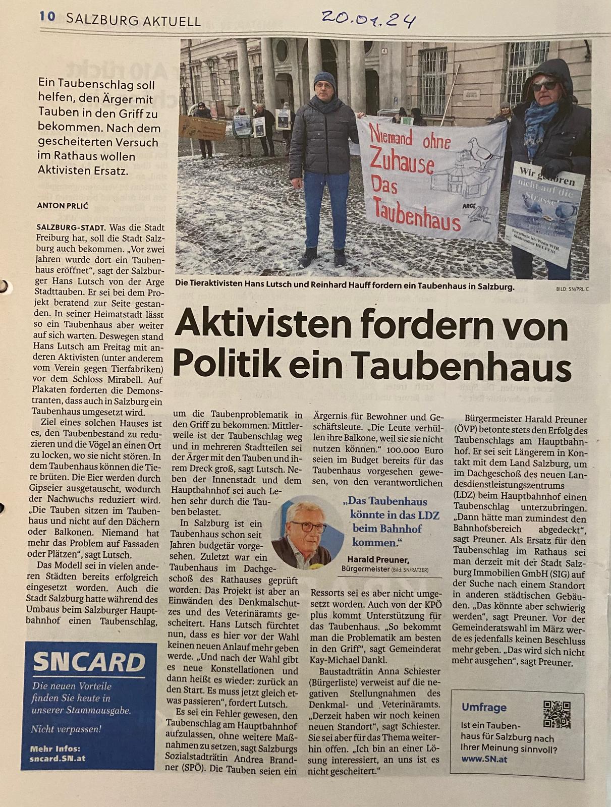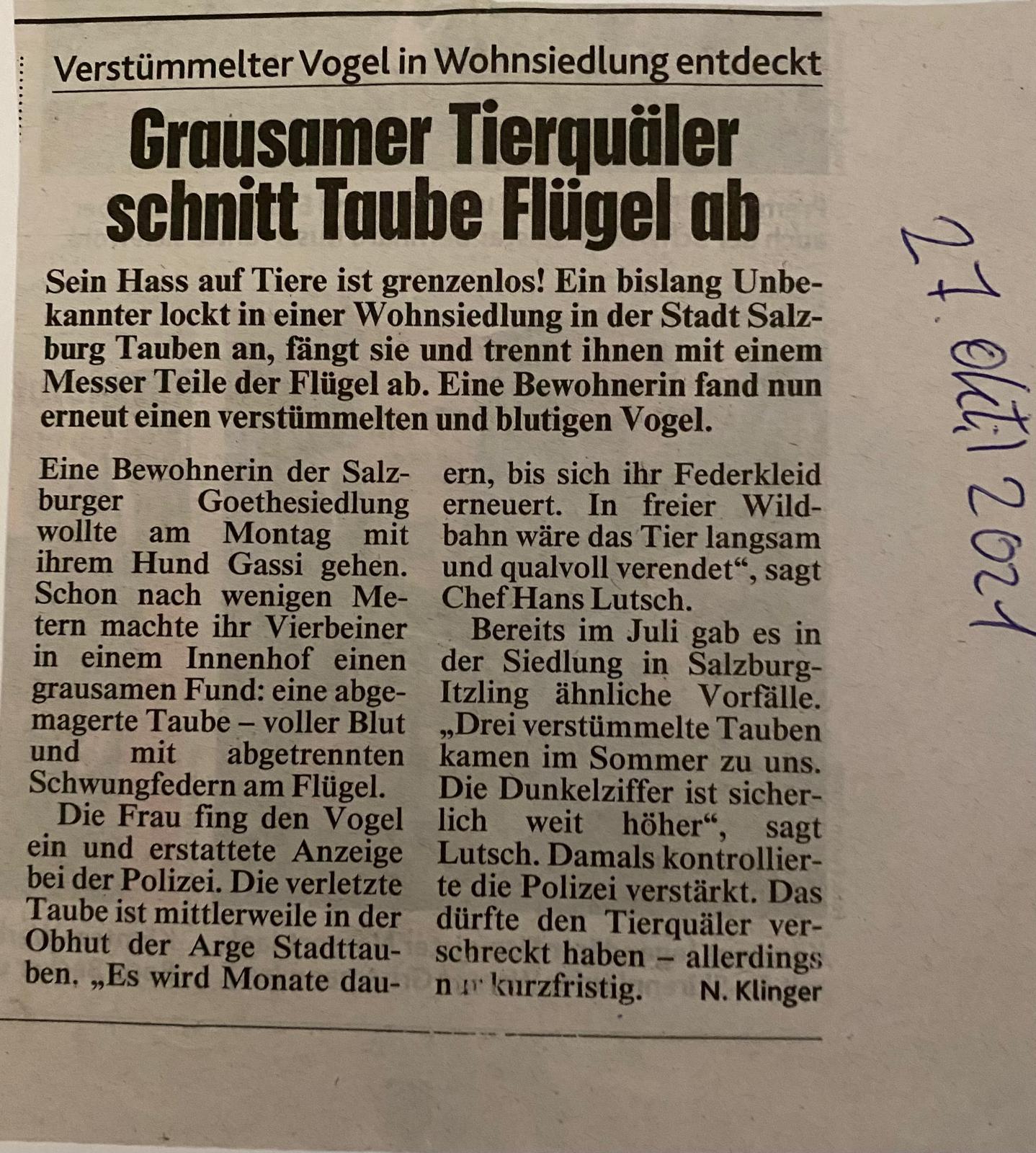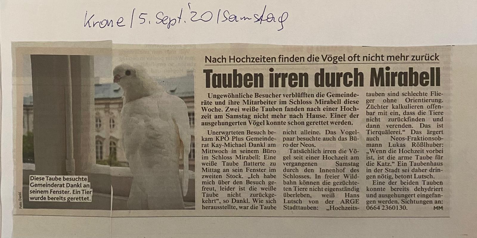 - Salzburger Nachrichten, 24. Jänner 2024: https://www.sn.at/salzburg/chronik/tauben-152187715
