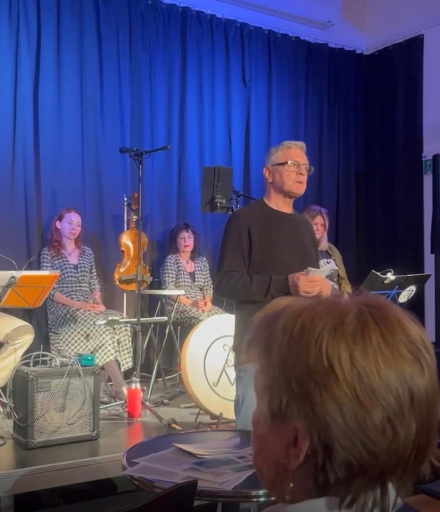 Untermalt und begleitet wurde die Lesung von der Salzburger Band „All Souls Night“, die vor allem Lieder aus der irischen Kultur spielt. Die Stimmung im Publikum war aufmerksam und begeistert. Die Lesung konnte in ihrer von Hans Lutsch vorgenommenen Auswahl das Publikum in Spannung versetzen. Die Aufmerksamkeit der Zuhörer:innen war bis zur letzten Minute für beide Beiträge, Lesung und Musik, gegeben. Der Applaus und die anschließenden Gespräche konnten diesen Eindruck nur bestätigen.