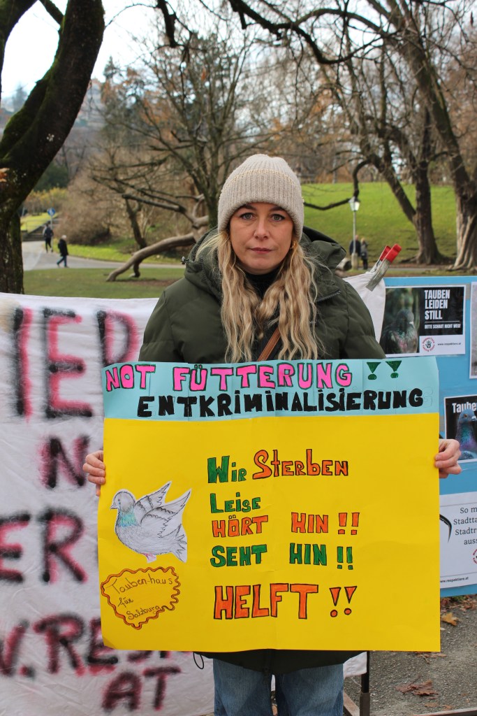 Schade, dass die Stadtregierung nicht den Dialog und die Nähe zu den protestierenden BürgerInnen sucht. Tierschutz geht uns alle an, auch die Stadtregierung. Der Hunger ist real und sollte ernst genommen werden. Damit der Tierschutz auch in der Mozartstadt eine politische Realität erfährt. Auch Festspielgäste haben bereits ihren Unmut über „verhungernde Straßentauben“ gegenüber der Stadtregierung kundgetan.