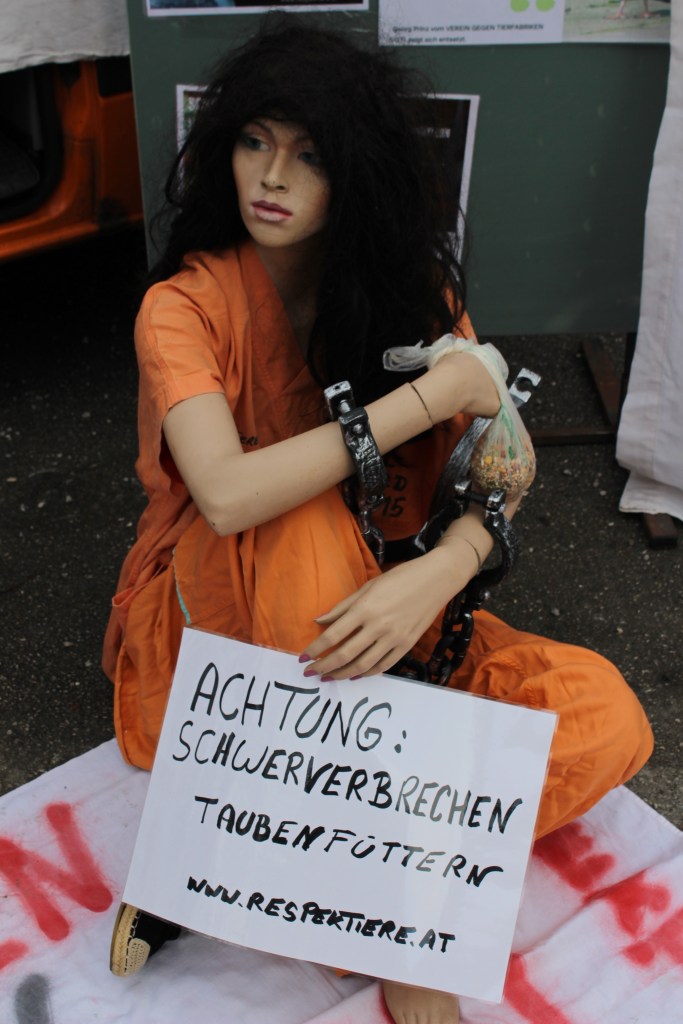 Mehr als 40 BürgerInnen der Stadt Salzburg sind dem Aufruf der Vereine „VGT“, „Respektiere“ und „ARGE Stadttauben Salzburg“ am Dienstag Nachmittag gefolgt, um die Stadtregierung zu Menschlichkeit und Vernunft aufzurufen. Das Thema „Verhungernde Tauben in der Stadt“ beschäftigt und verärgert immer mehr Menschen. Doch ihre zahlreichen Protest-Mails und Briefe werden nicht gehört.