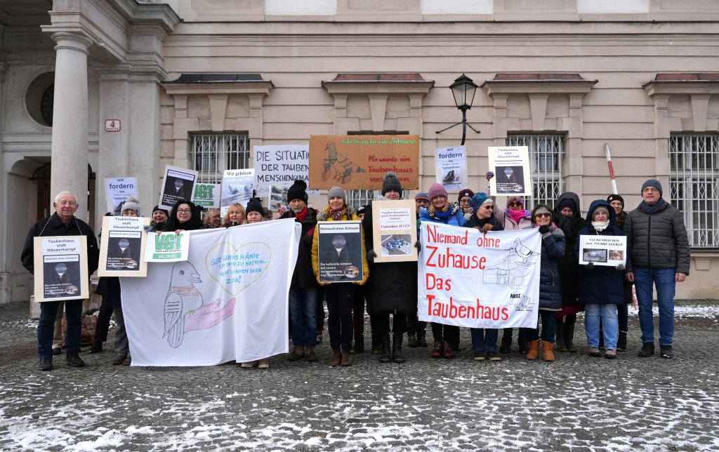 Wir tauschen Taubeneier an der Eisenbahnbrücke in Mülln aus. Diese soll in den nächsten Wochen vergrämt werden. Wir regulieren dabei den Tierschutz für Straßentauben und begleiten die Arbeiten.