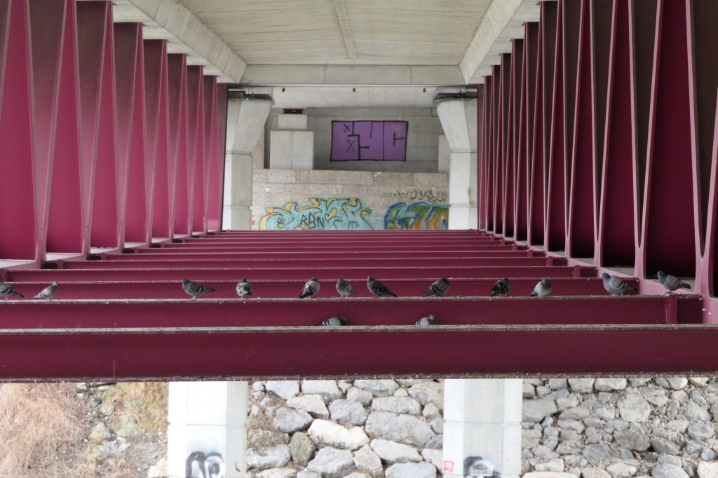 Brückenpfeiler werden neu vernetzt. Wir kümmern uns um den Schutz der Tauben. Bestandsaufnahme der Tierschutzsituation vor der neuen Vernetzung in Zusammenarbeit mit der ÖBB und einer Taubensbwehrfirma.