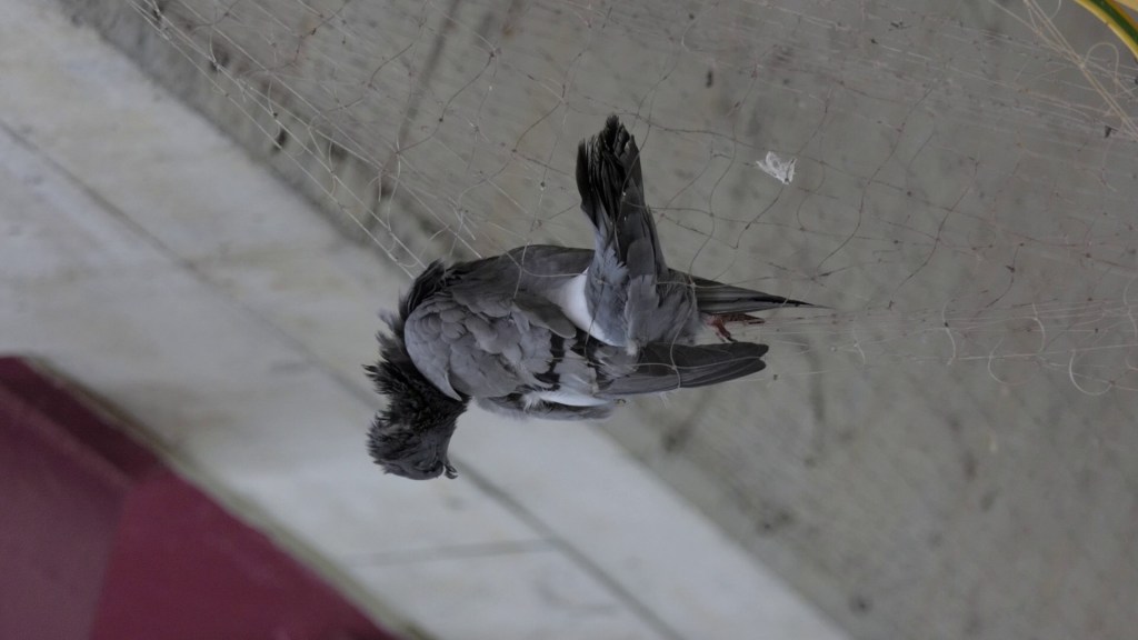 Ich war heute, am 16.12.2025, in der Nähe vom Salzburger Bahnhof. Als ich eine Straßentaube mit grob verschnürten Beinen – es hat sich ein Teil von einem „Balkonnetz“ an den Beinen verwickelt – sah. Ein kleines Mädchen mit seiner Mutter war auch am Ort. Das Mädchen wollte die verschnürte Taube fangen und retten.
