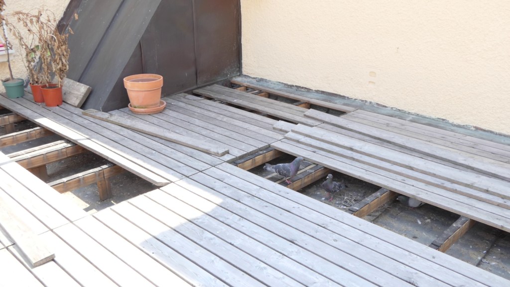 August 2018 – Befreiung von Tauben unter Planken auf einem Balkon