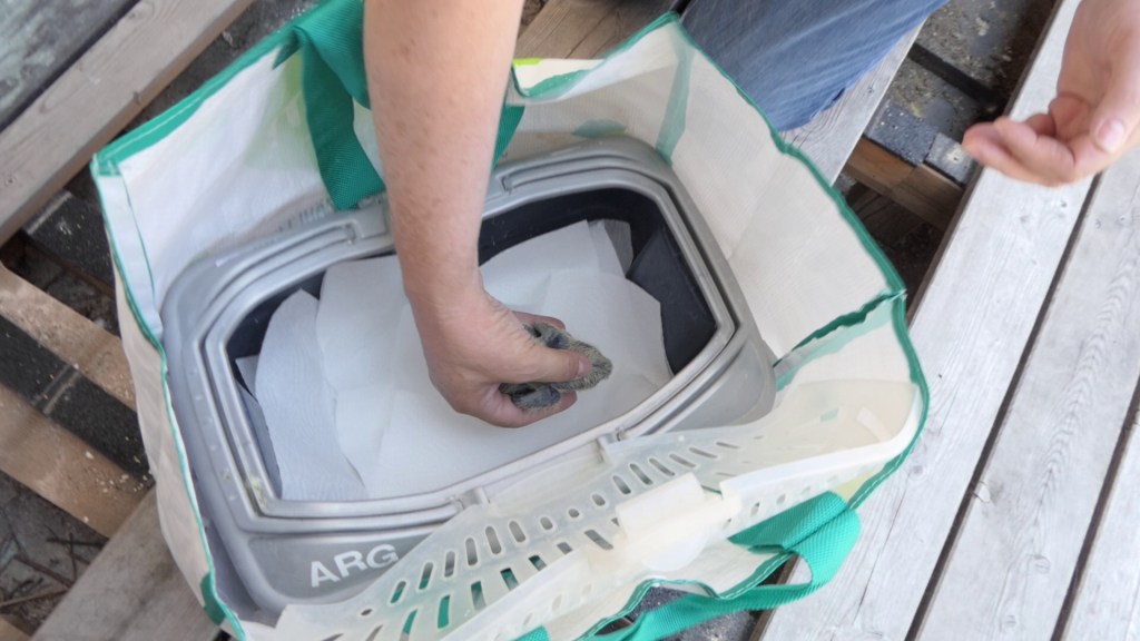 Wir haben täglich nach den Tauben gesehen, waren vorsichtig bemüht, sie einzufangen. Der ganze mit einem Taubennetz gesichrte Bereich war in der Höhe und auch zu einer Baustelle nur schwer zugänglich. Deshalb blieb uns nur der ebenerdige Bereich. Mit Futter angelockt konnten wir dann die Beiden aus der Gefahrenzone befreien.