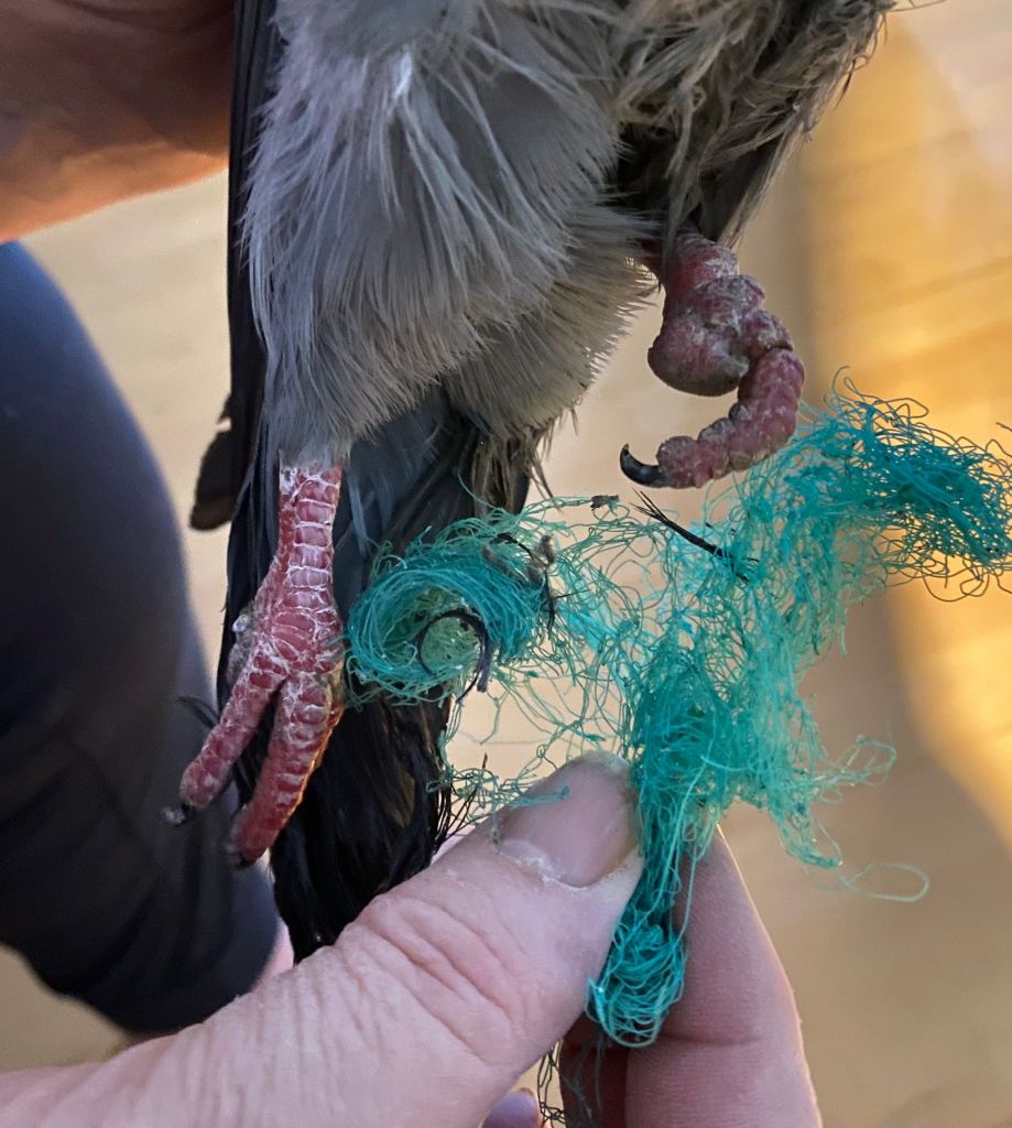 Die Taube wurde in einer unserer Pflegestationen von den schmerzhaften Verschnürungen befreit. Die Gliedmaßen wurden entsprechend behandelt und mit Pflege-Utensilien versorgt. Die Taube hat durch dieses Handicap schon empfindlich an Körpergewicht verloren. Die Futtersuche war für sie erschwert, da sie, durch diese Verschnürung, kaum auf den Beinen stehen konnte.